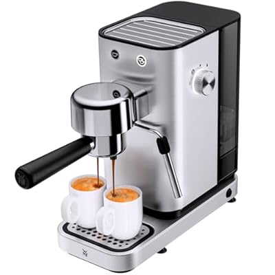 🇪🇸 WMF Lono - Cafetera expreso con 2 portafiltros 1350 W para 1-2 tazas de espresso 15 bares reposavasos espumador de leche cuchara prensadora de café acero inoxidable mate